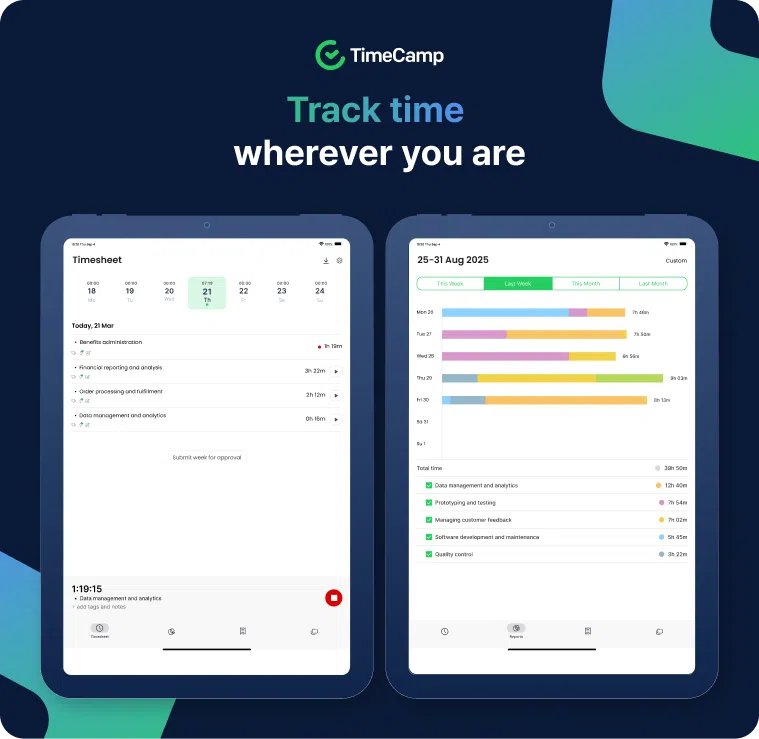 👉  TimeCamp mobile app provides you with: