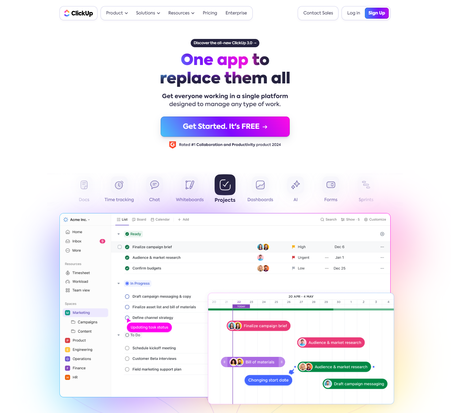 ClickUp is an all-in-one project management tool that brings all remote jobs in your business together and lets them plan and manage work one place.