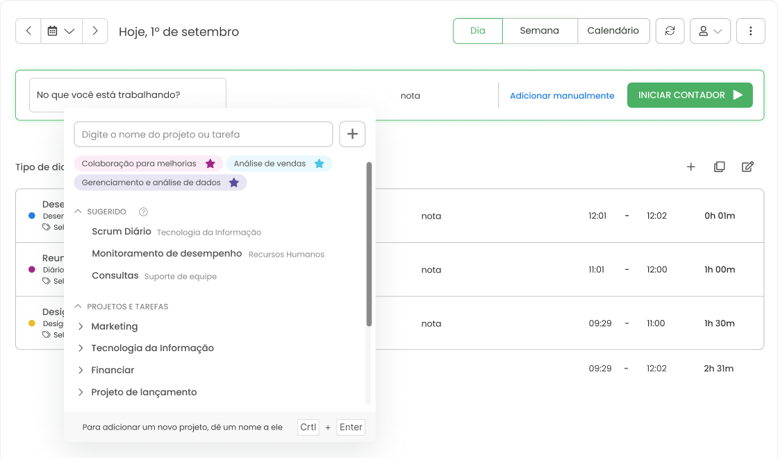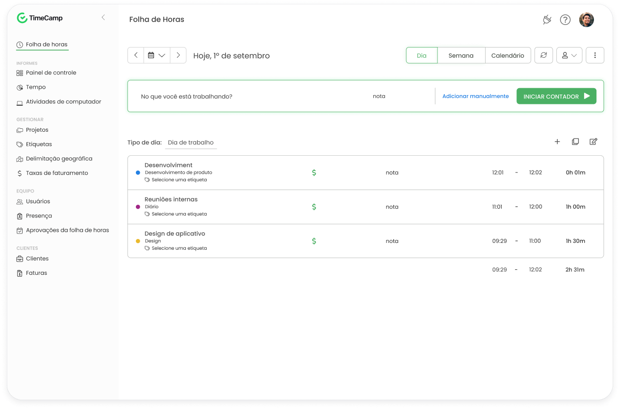 O TimeCamp é uma ferramenta muito rápida e fácil de usar para o controle de tempo.