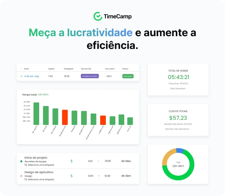 TimeCamp é um programa de gerenciamento de tempo gratuito para usuários ilimitados com muitos recursos úteis. O programa gratuito oferece acesso total aos mais importantes recursos.