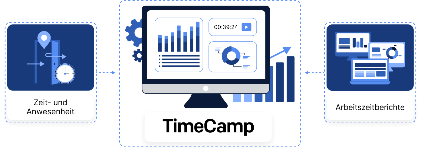 Mit TimeCamp erfassen Sie Arbeitszeiten und Aktivitäten und erhalten so volle Transparenz über die Performance Ihres Teams.
