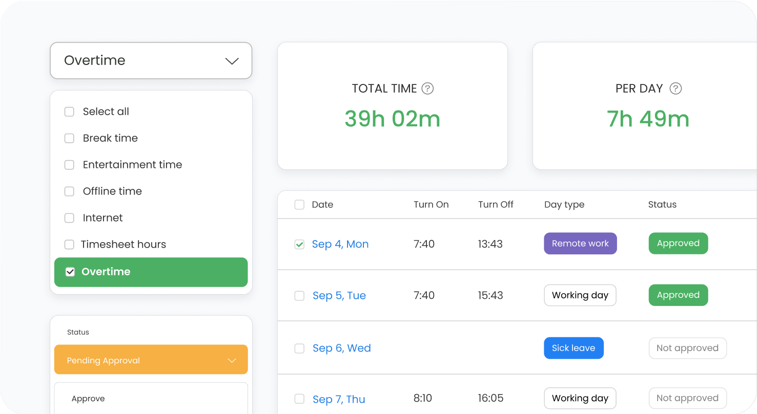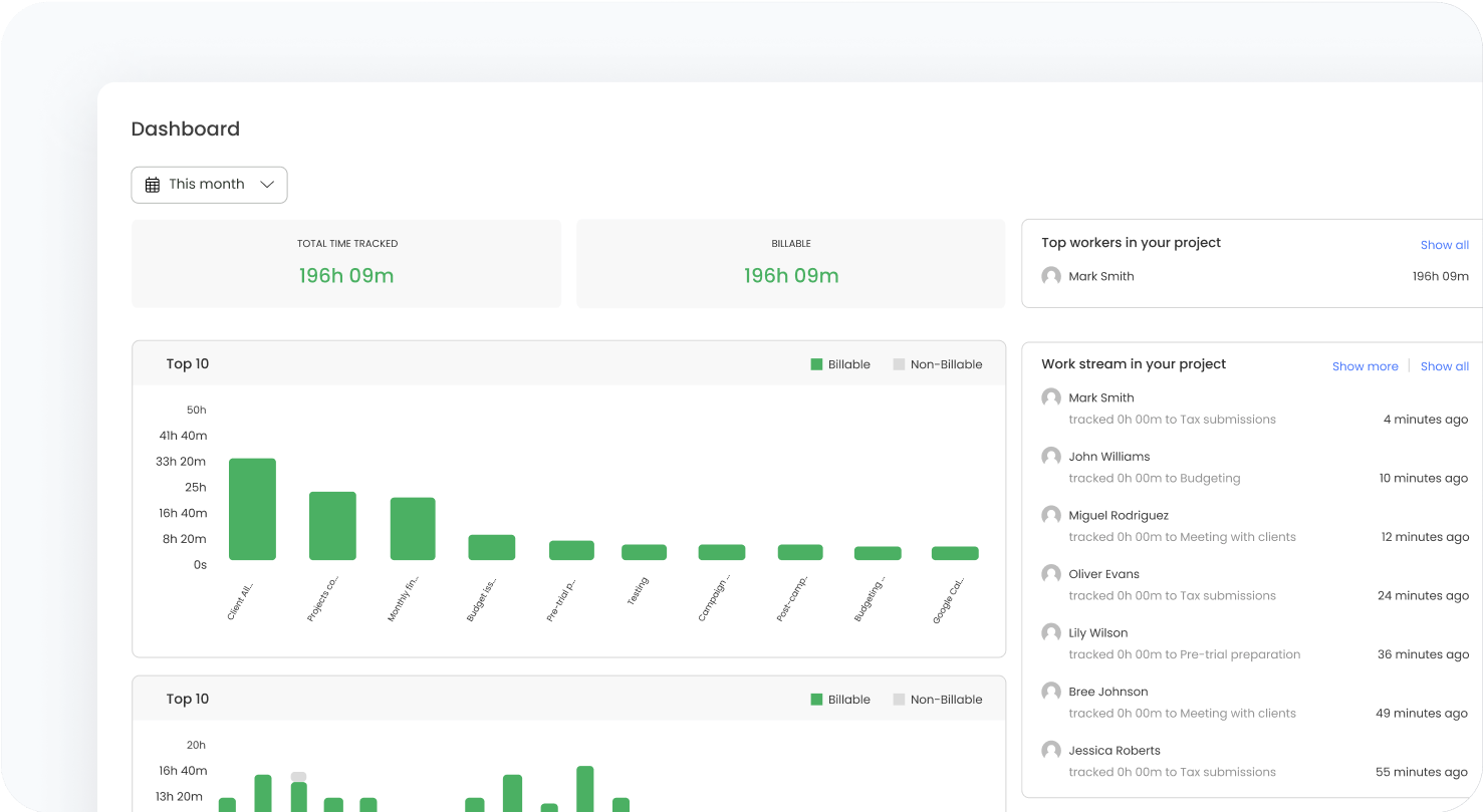 Simplifica el proceso de gestión de bajas por enfermedad de los empleados con TimeCamp. Realiza un seguimiento de las ausencias, gestiona solicitudes y garantiza el cumplimiento normativo con facilidad mediante nuestro software de gestión de bajas por enfermedad.