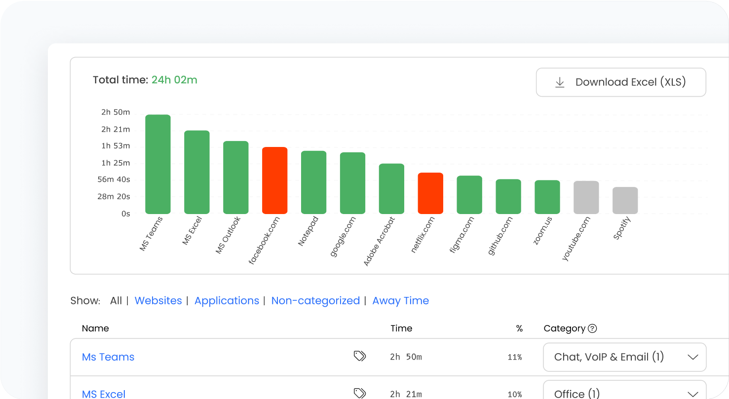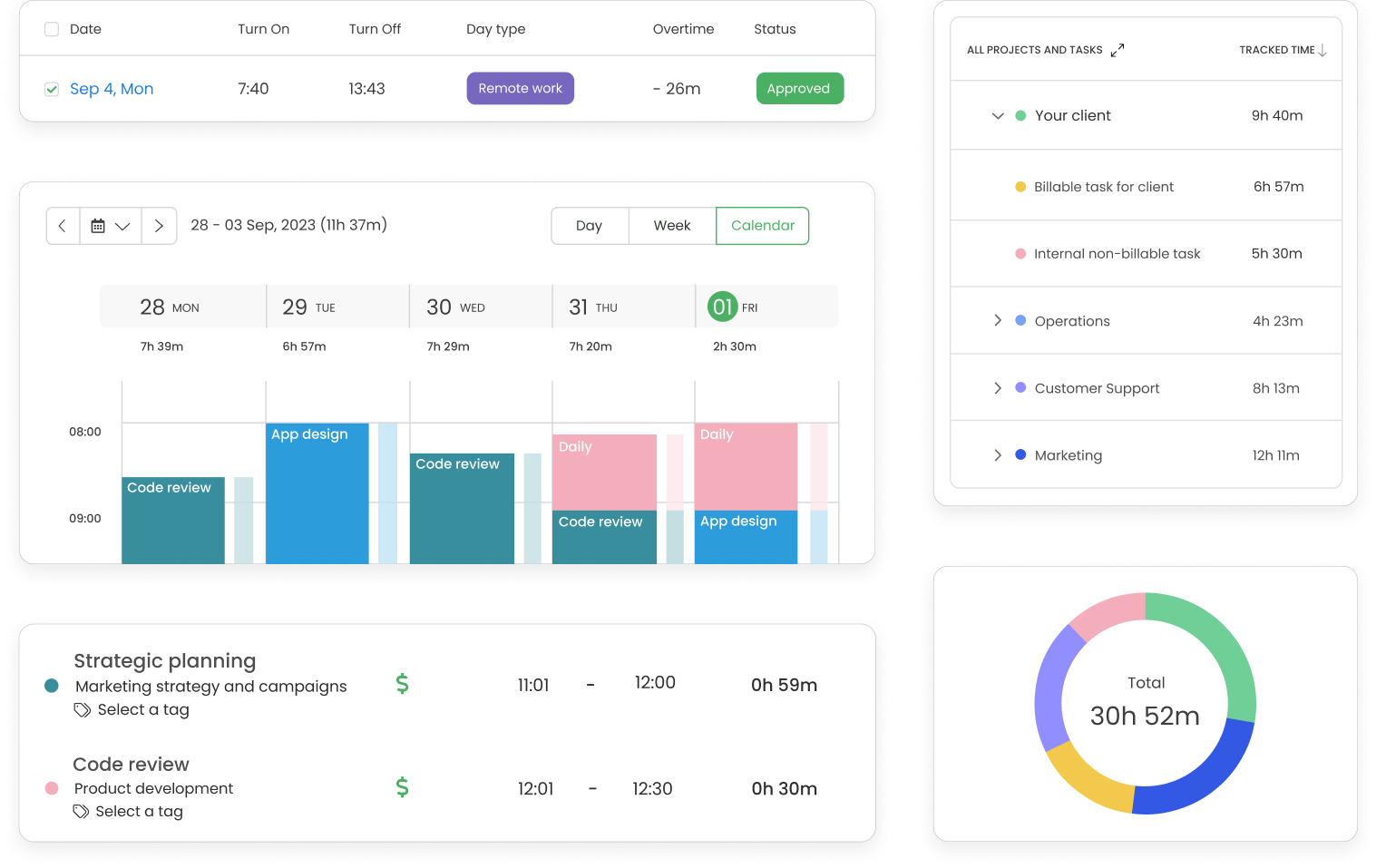 TimeCamp ayuda a las organizaciones a mantener la responsabilidad, optimizar los flujos de trabajo e identificar oportunidades para mejorar la eficiencia. Nuestra herramienta proporciona información clave para comprender el comportamiento de los usuarios, rastrear la actividad en Internet y garantizar que los empleados se concentren en tareas productivas.