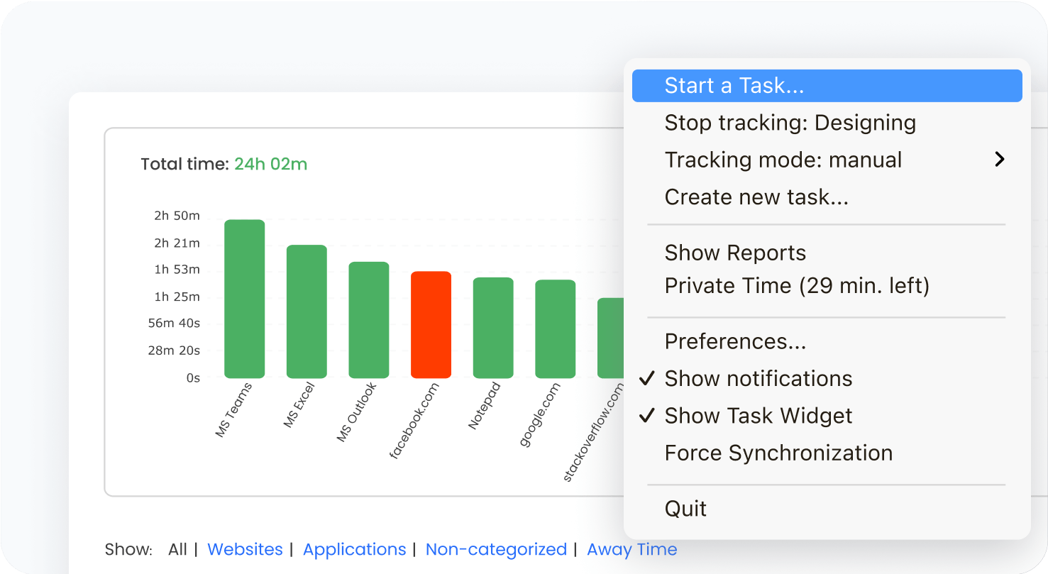 Una aplicación de escritorio en TimeCamp registra la actividad del