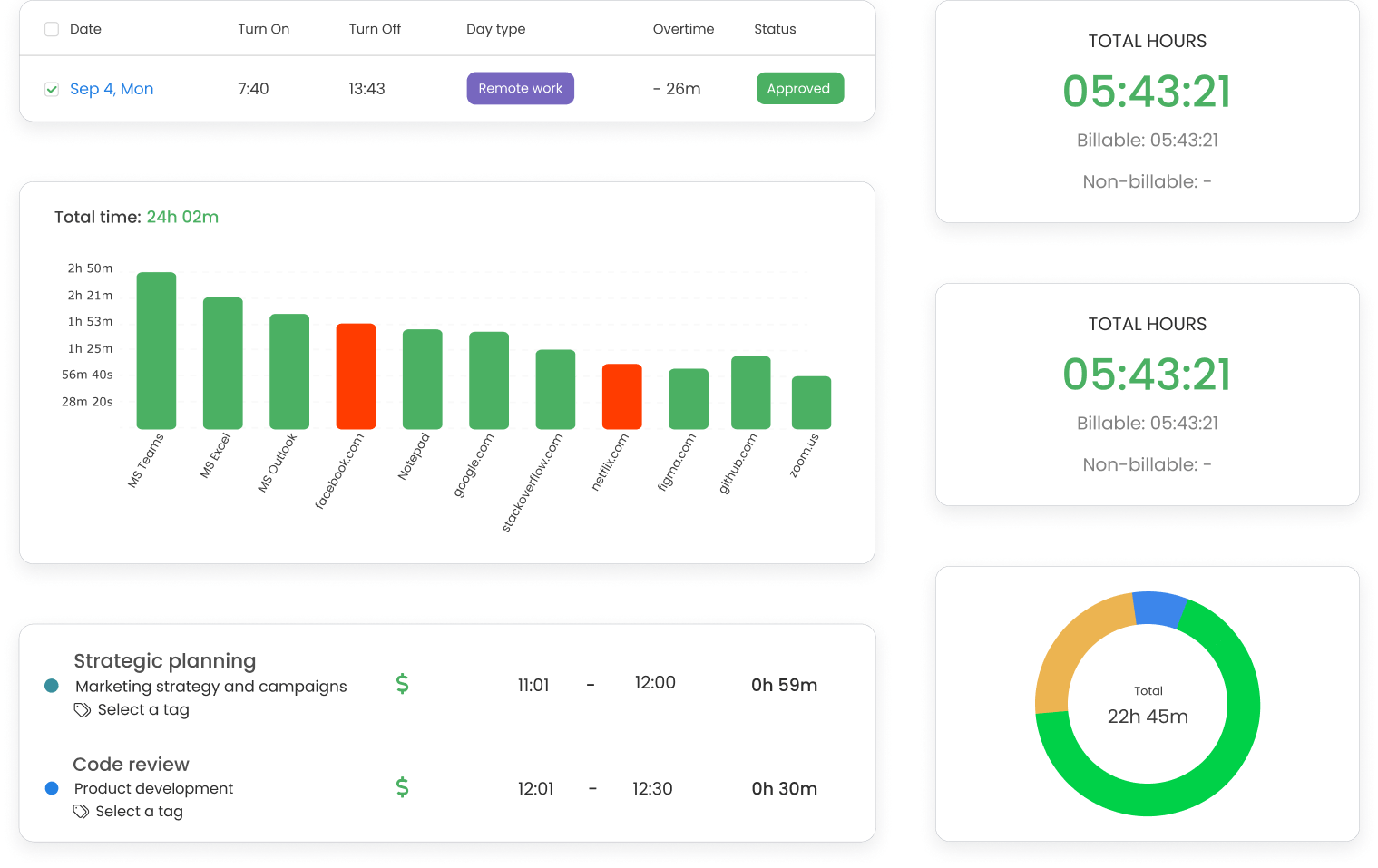El seguimiento diario del tiempo de trabajo marca automáticamente