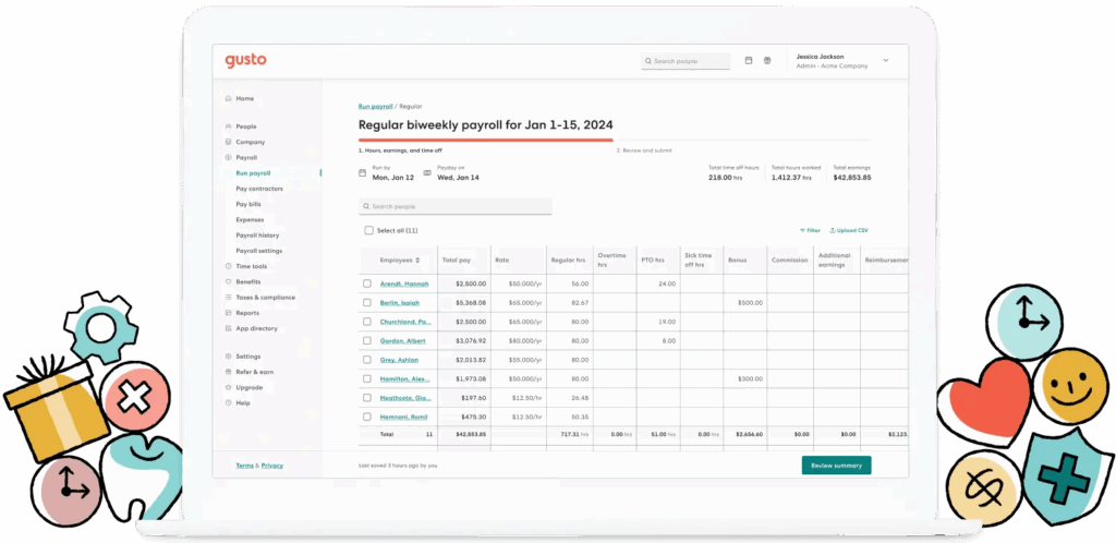 Gusto est l’un des logiciels de paie et de gestion RH en ligne les plus populaires, utilisé par les petites et moyennes entreprises. Il est particulièrement adapté aux secteurs comme la santé, le bien-être, la restauration, les services sur le terrain — bref, toutes les structures fonctionnant avec des rendez-vous, des plannings horaires ou du travail posté.