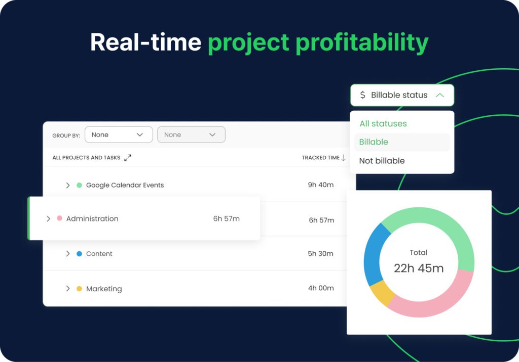L’objectif principal d’un logiciel de suivi des heures facturables est d’éliminer les tâches manuelles et les erreurs. Le suivi automatique du temps permet d’enregistrer toutes les heures de travail sans effort. Les meilleures applications incluent des minuteurs intégrés et permettent aussi d’ajouter ou de modifier les entrées manuellement.