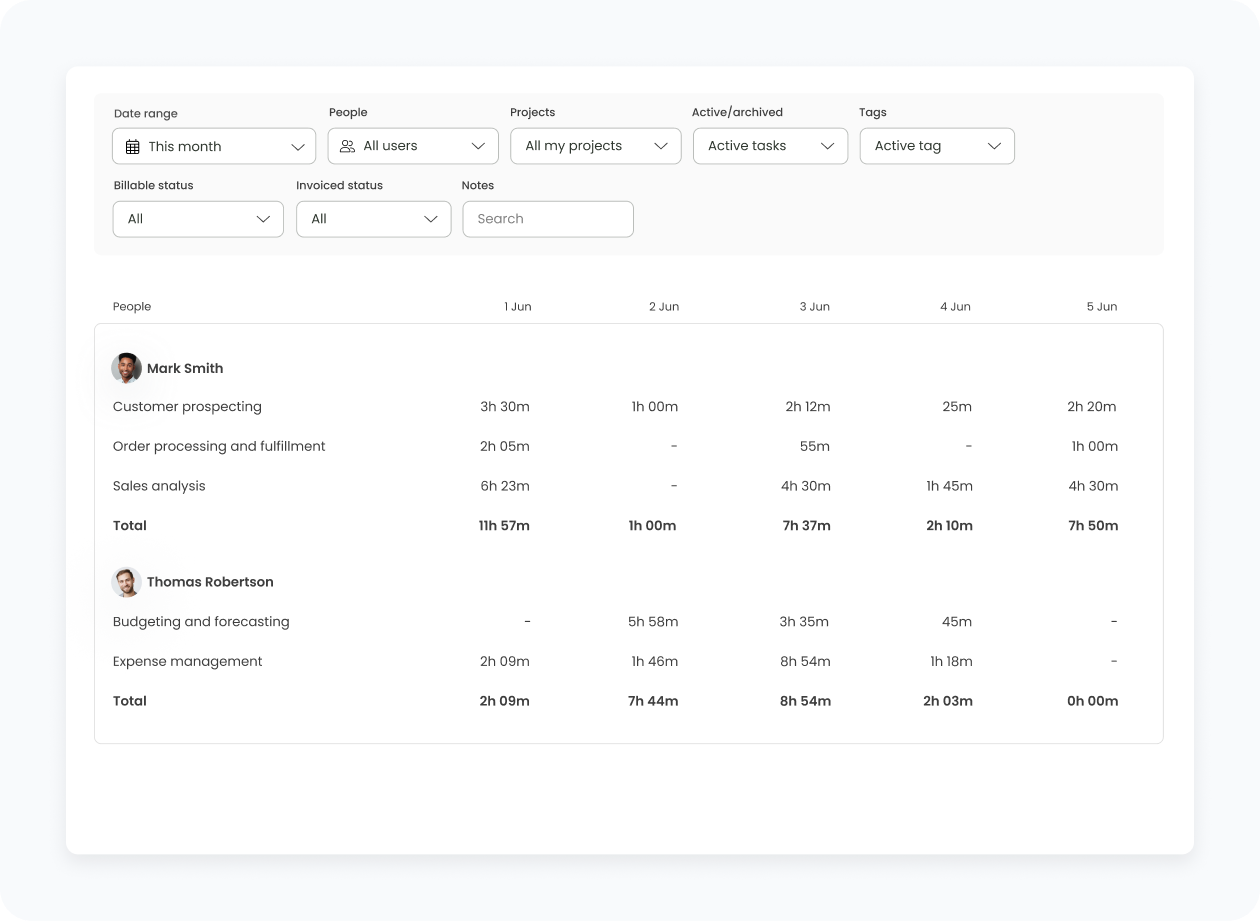 With the TimeCamp Jira integration, all the Jira tasks, epics, and issues are automatically imported into TimeCamp, giving your team a clear view of your time and productivity. What is more, our automated time tracker detects when you switch between Jira tasks and adjusts your timer accordingly. That's something native Jira time tracking doesn't offer.