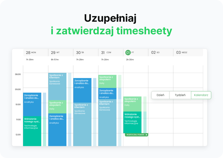 • Mniej błędów — współczesne aplikacje automatycznie śledzą i raportują czas spędzony na aktywnościach (również w aplikacjach i na stronach internetowych), więc dane są dokładne.