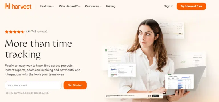 zrzut ekranu ze strony Harvest na potrzeby artykułu pt. 11 najlepszych i darmowych aplikacji do ewidencjonowania czasu pracy dla efektywnego zarządzania czasem w 2025 roku
