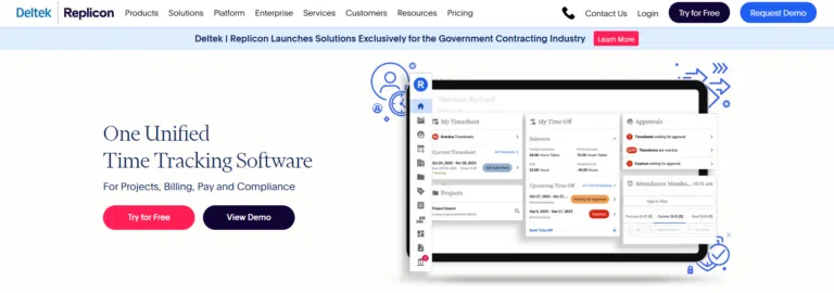 zrzut ekranu ze strony Replicon na potrzeby artykułu pt. 11 najlepszych i darmowych aplikacji do ewidencjonowania czasu pracy dla efektywnego zarządzania czasem w 2025 roku