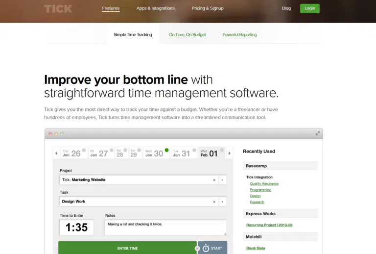 Tick to proste i zautomatyzowane oprogramowanie do śledzenia czasu, idealne dla osób, które nie potrzebują zaawansowanych funkcji typowych dla większości aplikacji. Automatycznie śledzi czas poświęcony na zadania i przedstawia dane w postaci prostych raportów.