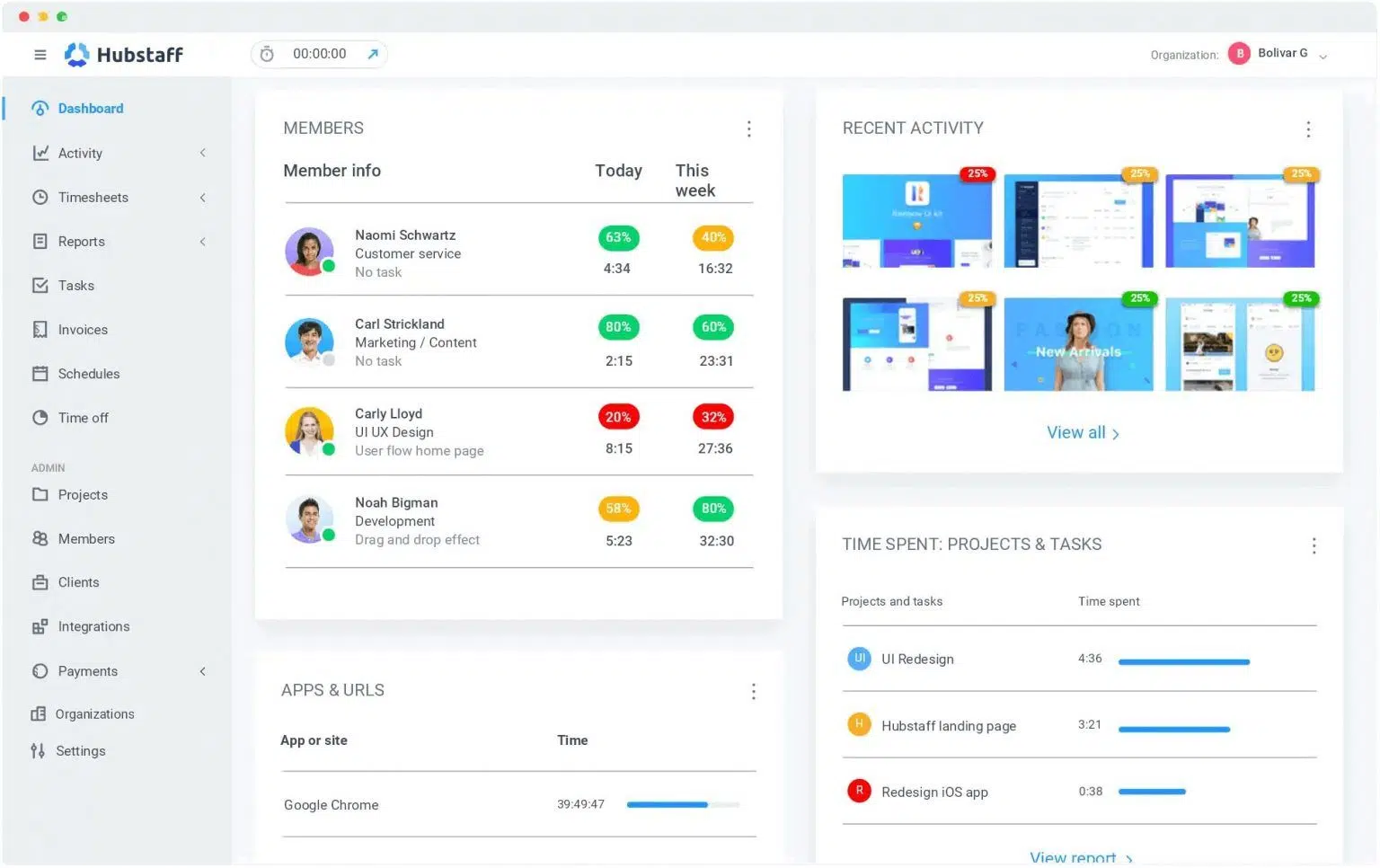 Hubstaff (dokładnie: Hubstaff Time) zawiera wszystkie kluczowe funkcje niezbędne do rejestrowania czasu pracy. Jest prosty i doskonale sprawdza się w firmach, które potrzebują na bieżąco zarządzać projektami. Najlepiej nadaje się dla małych i zdalnych zespołów – można używać go jako zegara pracowniczego do zarządzania obecnością i przepływem pracy w zespole.