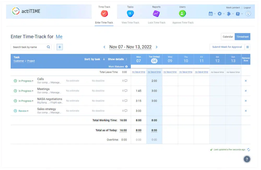 actiTIME to darmowa aplikacja online do ewidencji czasu (dla maksymalnie 3 użytkowników). Najlepiej sprawdza się dla freelancerów i małych zespołów. Umożliwia tworzenie zakresu projektu, przydzielanie zadań, rejestrowanie godzin i analizę danych.