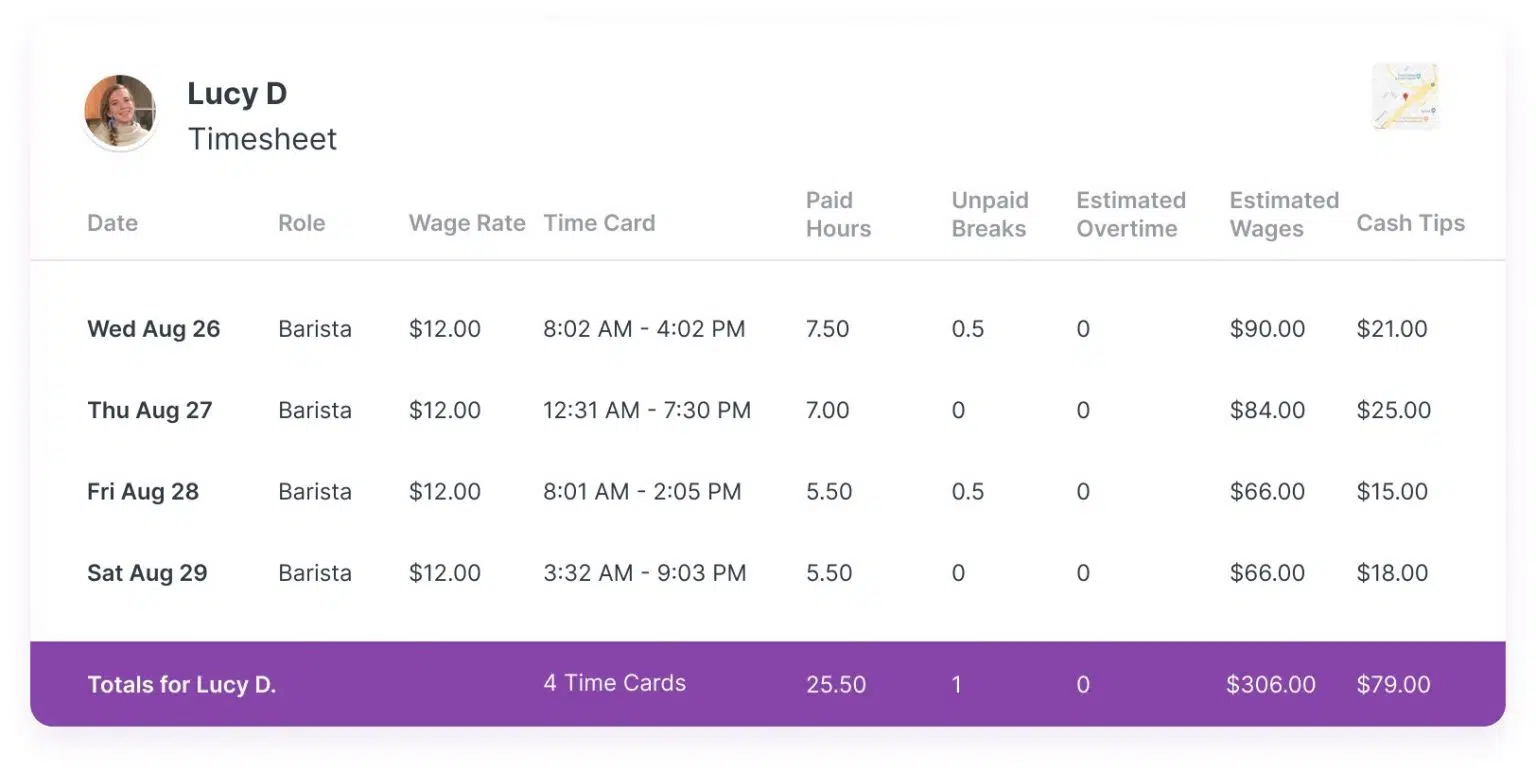Arkusze Homebase pozwalają śledzić godziny pracy, przerwy i nadgodziny, aby łatwo obliczać płace. Automatycznie wykrywają brakujące wpisy i umożliwiają ich korektę. Przechowują historię edycji wszystkich arkuszy.