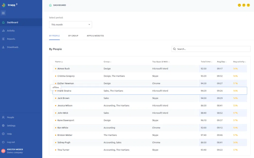 Traqq to platforma monitorująca produktywność pracowników, idealna dla zespołów zdalnych. Oferuje darmowe arkusze czasu online.