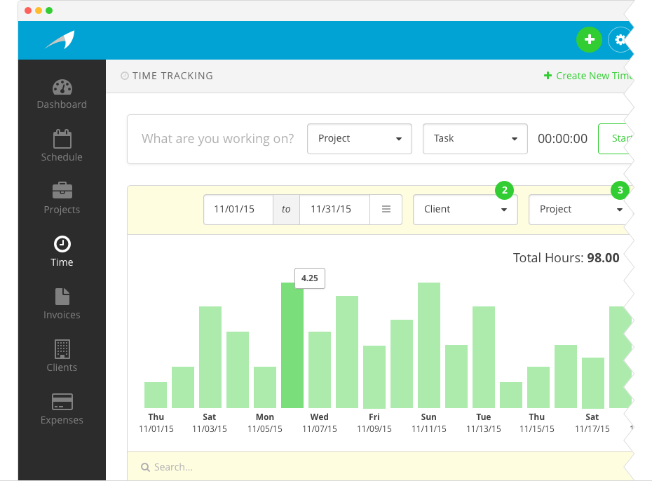 Posiada prosty timer start/stop, rejestracja godzin rozliczeniowych, monitorowanie budżetu i przechowywanie danych o projektach, klientach i członkach zespołu w chmurze.