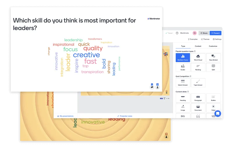 Nic tak nie angażuje i nie zwiększa produktywności zespołu jak klasyczna burza mózgów. Cyfrowe narzędzia takie jak Mentimeter pozwalają maksymalnie wykorzystać każdą sesję, dając możliwość zbierania i przechowywania pomysłów w łatwo dostępnym miejscu.