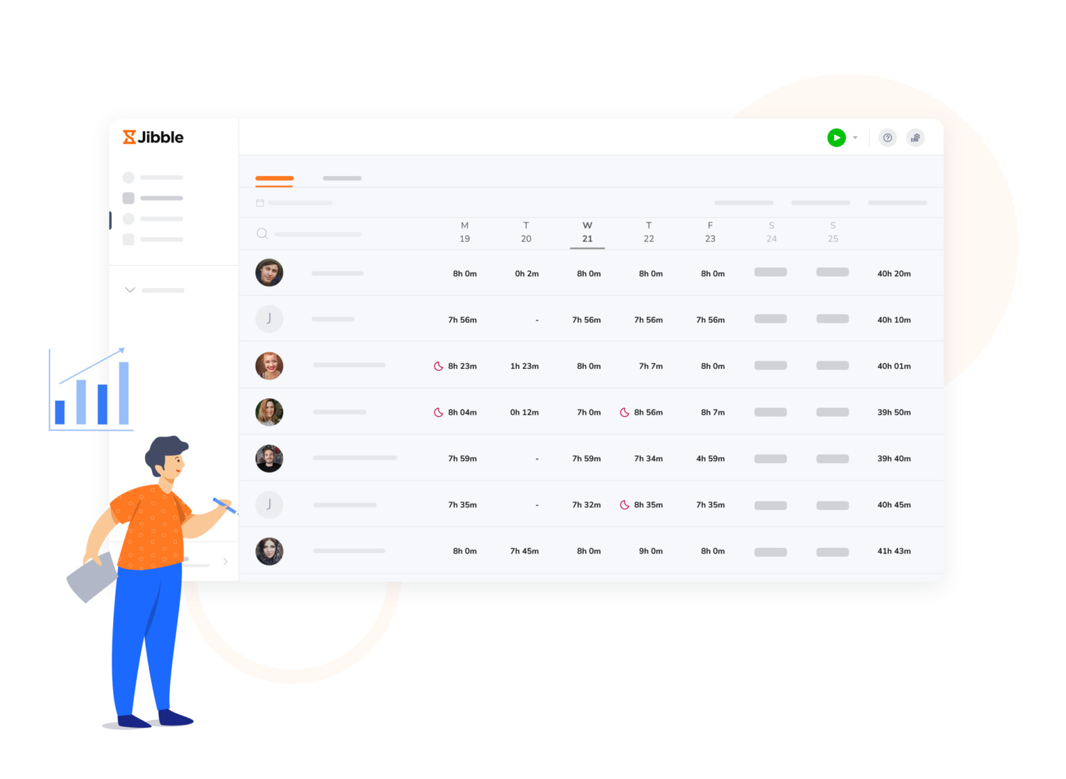 Jibble to rozwiązanie do śledzenia czasu stworzone z myślą o jednym celu: dokładnym i konsekwentnym rejestrowaniu czasu pracy, bez względu na wielkość zespołu – całkowicie za darmo.