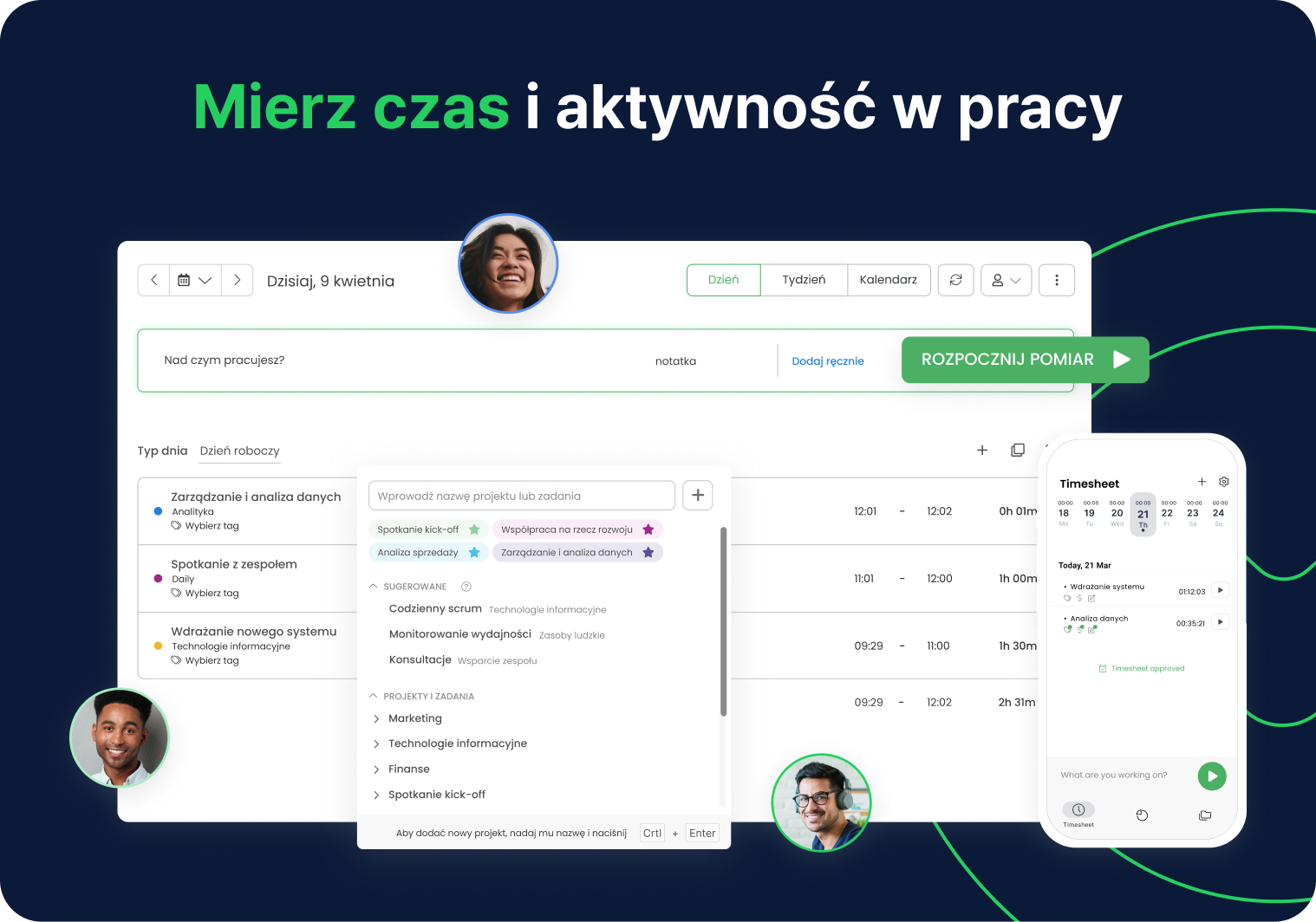 Wypróbuj TimeCamp i mierz czas pracy, analizuj produktywność i wydajność oraz rozliczaj klientów – łatwiej.