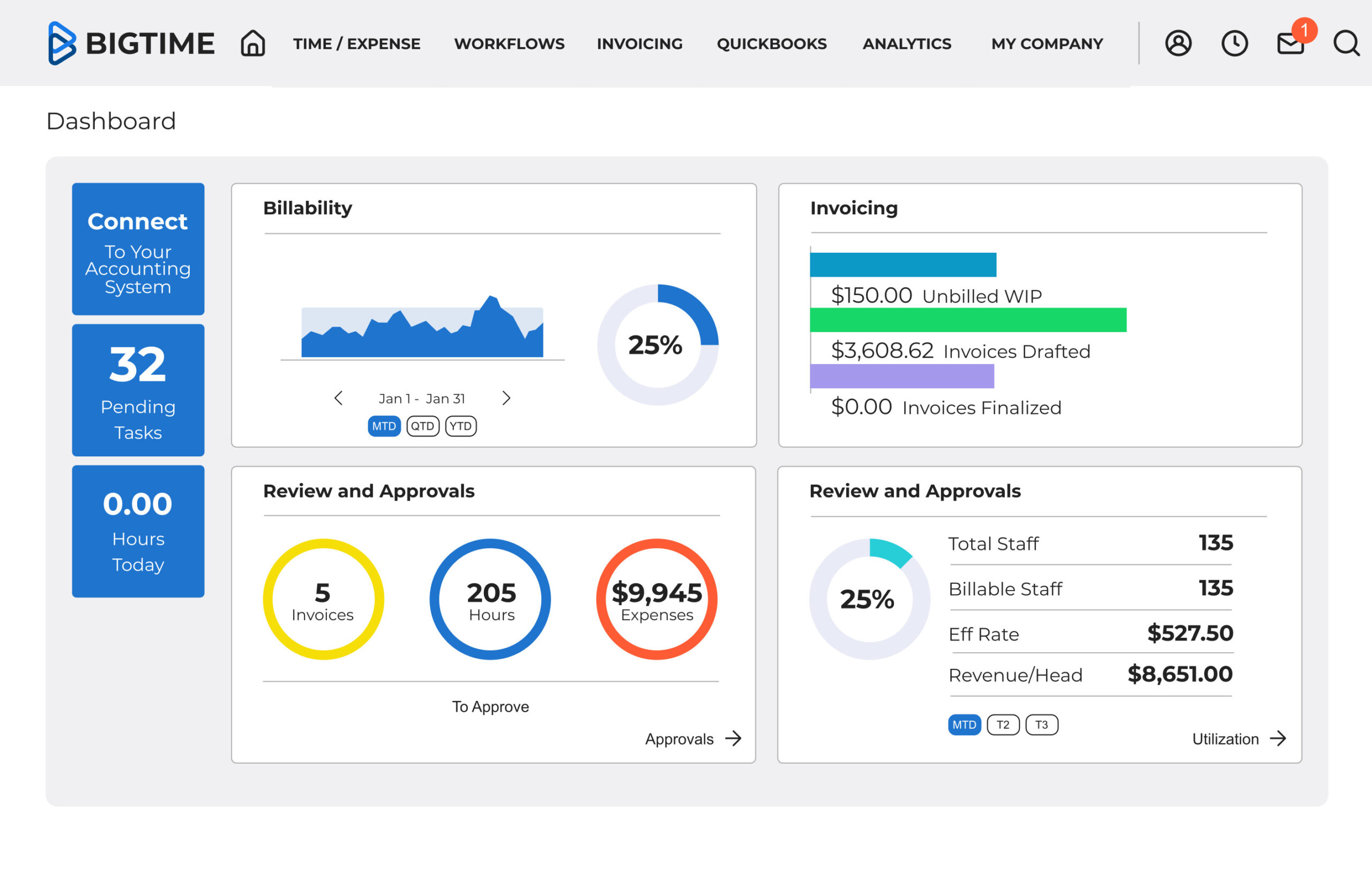 BigTime pomaga zaoszczędzić czas i rozwijać firmę dzięki lepszemu planowaniu zasobów, fakturowaniu i podejmowaniu decyzji w oparciu o dane.