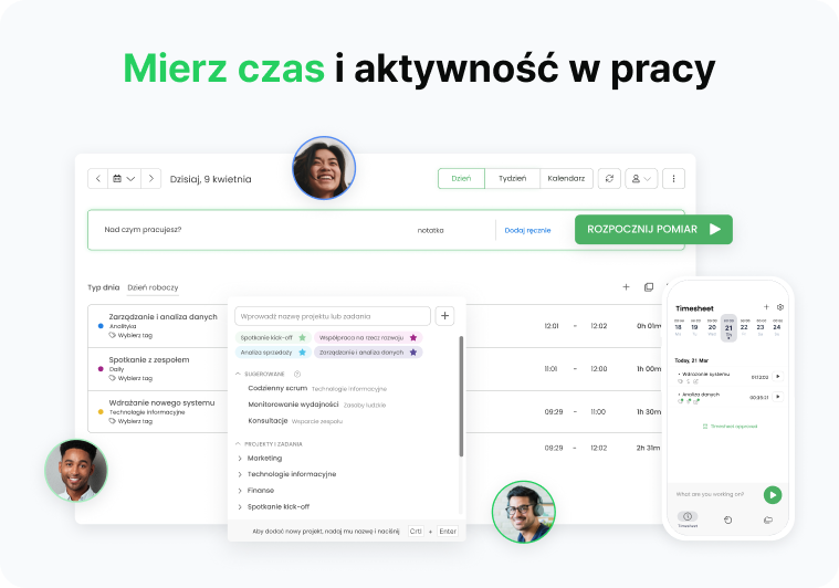 Śledź czas w projektach i zadaniach, twórz raporty i rozliczaj klientów — wszystko w jednym narzędziu.