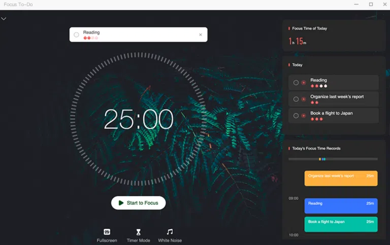 Focus To-Do to aplikacja z timerem na ekranie PC. Pozwala zarządzać zadaniami w formie list rzeczy do zrobienia i łączy je z techniką Pomodoro.