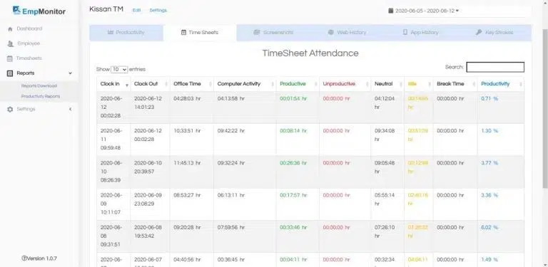 Jeśli podejrzewasz, że członkowie Twojego zdalnego zespołu nie wykonują pracy efektywnie, skorzystaj z EmpMonitor, aby śledzić ich produktywność. To narzędzie pomaga kontrolować wydajność i oceniać działania pracowników.