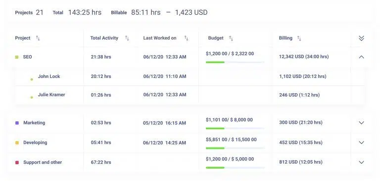Chociaż Hubstaff to oprogramowanie do śledzenia czasu pracy, świetnie sprawdza się również jako narzędzie do monitorowania aktywności pracowników. Jest jednym z najpopularniejszych programów używanych do tego celu – dzięki swojej prostocie i intuicyjności.
