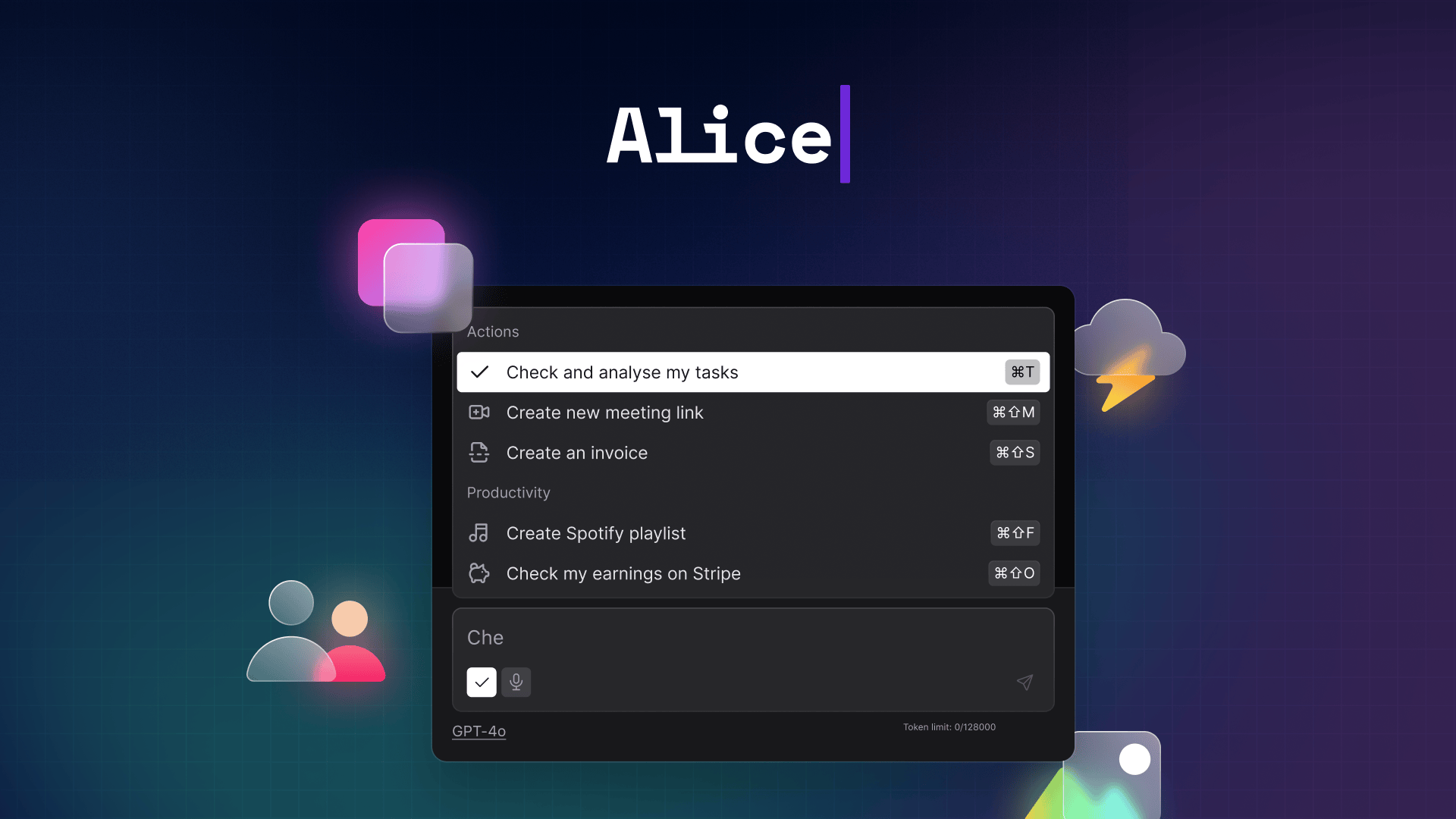 Alice to natywna aplikacja umożliwiająca korzystanie z wielu modeli AI w jednym miejscu. Pozwala prowadzić rozmowę z dowolnym modelem, a także tworzyć własnych asystentów AI i łączyć się z zewnętrznymi aplikacjami. W połączeniu z zaawansowanymi możliwościami automatyzacji Alice znacząco przyspiesza codzienną pracę.