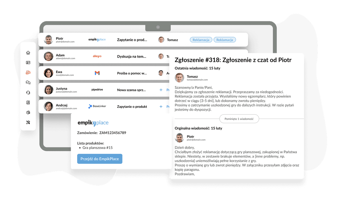 • Wewnętrzne komentarze i przekazywanie spraw – wspierające współpracę asynchroniczną w pracy indywidualnej i między zespołami,