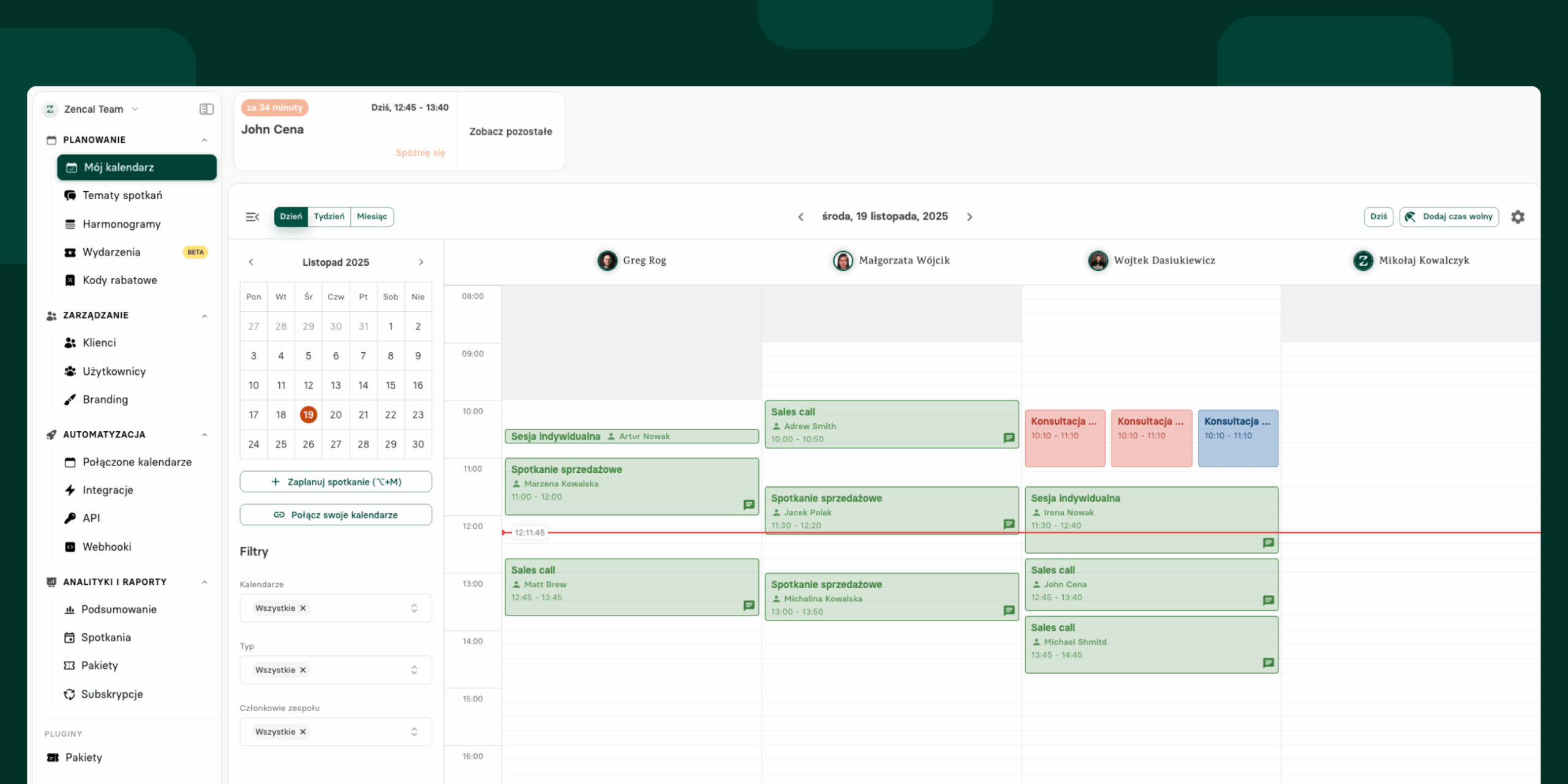 Zencal to polski system do rezerwacji spotkań online. Działa jak wirtualna recepcja i zarządza spotkaniami oraz kalendarzami, pozwalając Ci skupiać się na obsłudze klientów.
